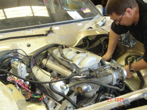 We restored the body on this vehicle a few years ago. Murray says it's now time to make go as good as it looks. "Put a Windsor in it' I said. "That'll stir the possum in some of the Holden boys". Seriously though Murray has done all the legwork. A late model donor Statesman with an injected 5.0 litre was delivered to our workshops. A few days saw the donor car stripped of its mechanicals. The engine and trans then underwent a sympathetic restoration to repair a few oil leaks, new accessories etc to ensure that it will provide troublefree service upon installation to the Torana. Can't wait to see it finished.....